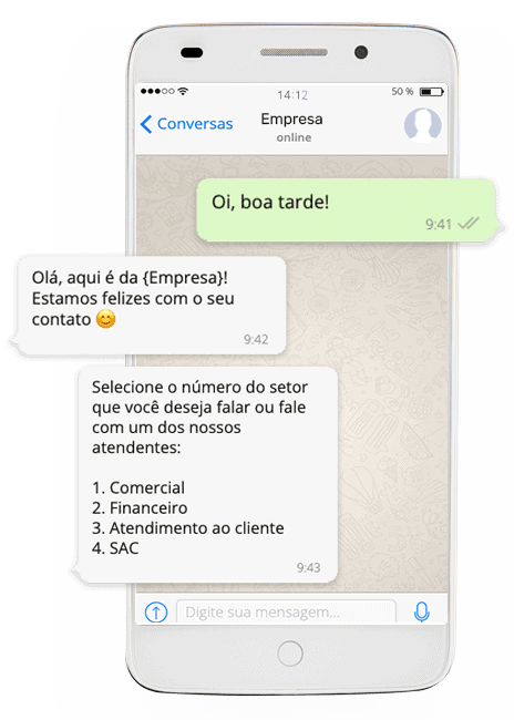 Configure o chatbot com mensagens personalizadas que identificam seu serviço e seus produtos.